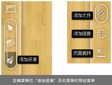 点击后,右侧工具栏出现“添加文件”、“添加链接”、“页面跳转”菜单。